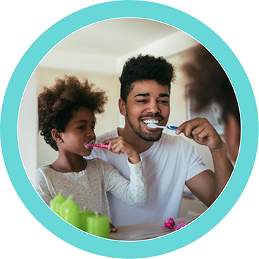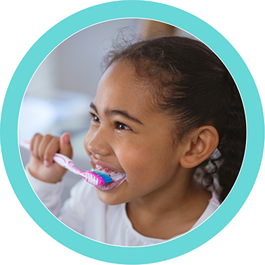 The sooner the better! Starting at birth, clean your child’s gums with a soft infant toothbrush or cloth and water. As soon as the teeth begin to appear, start brushing twice daily using fluoridated toothpaste and a soft, age-appropriate sized toothbrush. Use a rice-grain-sized smear of toothpaste to brush the teeth of a child less than 2 years of age. For the 2–5-year-old, dispense a pea-sized amount of toothpaste and perform or assist your child’s toothbrushing. Remember that young children do not have the ability to brush their teeth effectively.
