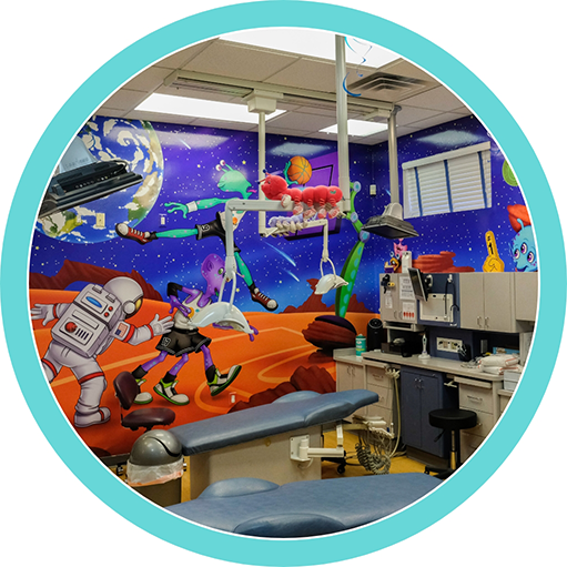 Our office is one-of-a-kind, and saying that it’s “kid-friendly” is a big understatement. It has been described by many of our patients as the “Disneyland” of dental offices. The setup and atmosphere of our office will immediately decrease the anxiety of the child. From the moment you walk into the waiting room you will see the difference. Check out some of the unique, cool features that our office has to offer for kids and parents alike!